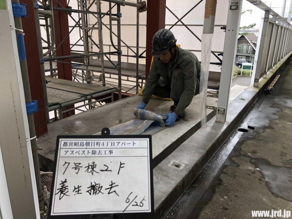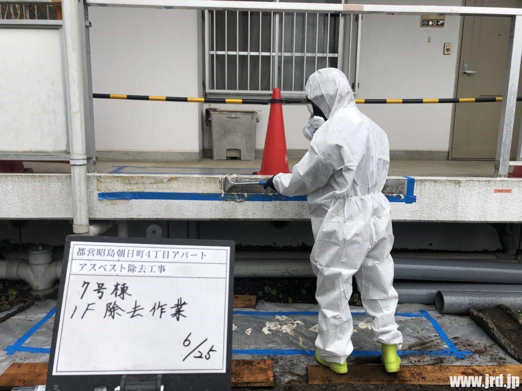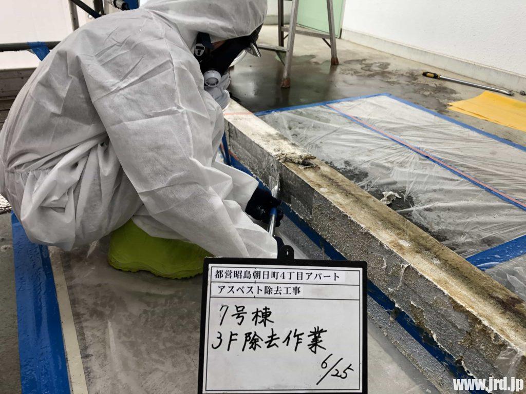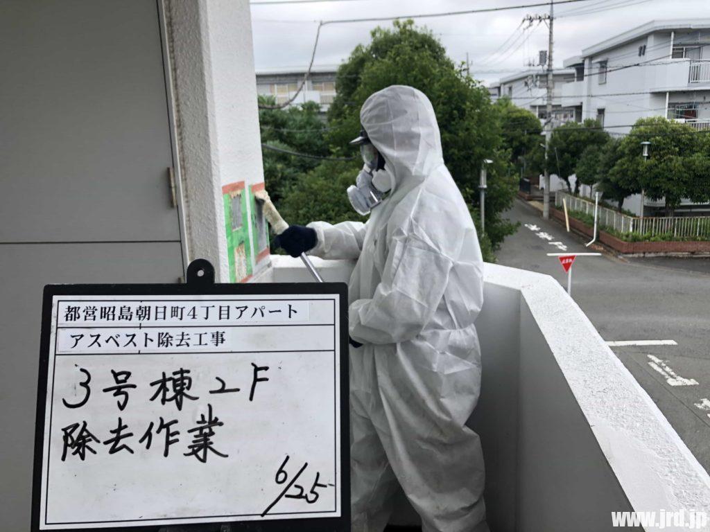 都営昭島朝日町四丁目アパート3,7号棟アスベスト含有塗膜除去工事(昇降機設置工事に伴うアスベスト含有塗膜除去工事)を行いました。弊社では、解体工事やアスベスト(石綿)の除去を専門に行なっております。作業員はEPA(アメリカ合衆国環境保護庁)のアスベストスーパーバイザーを取得しております。
