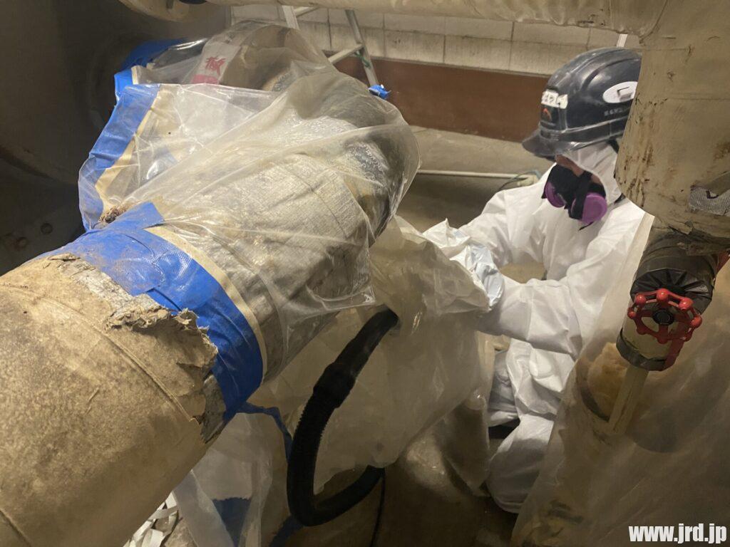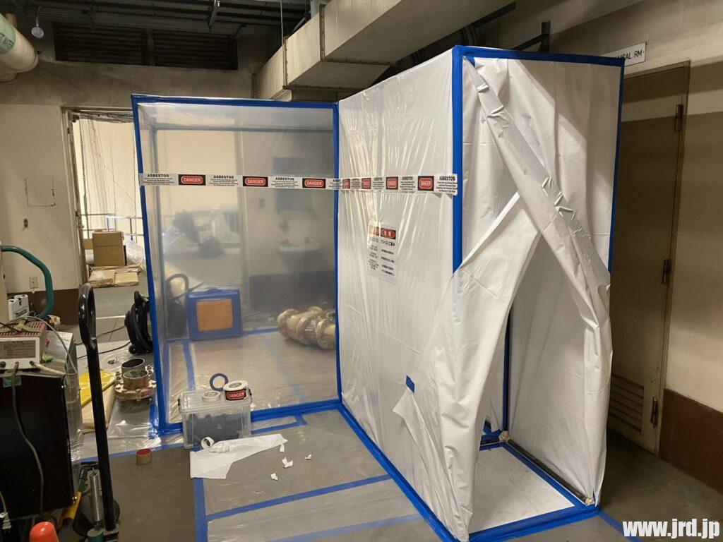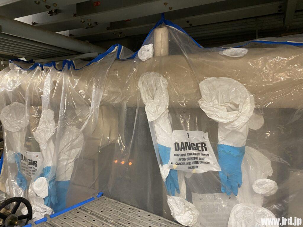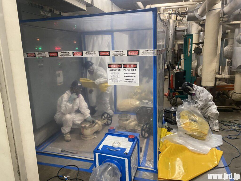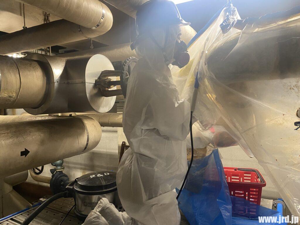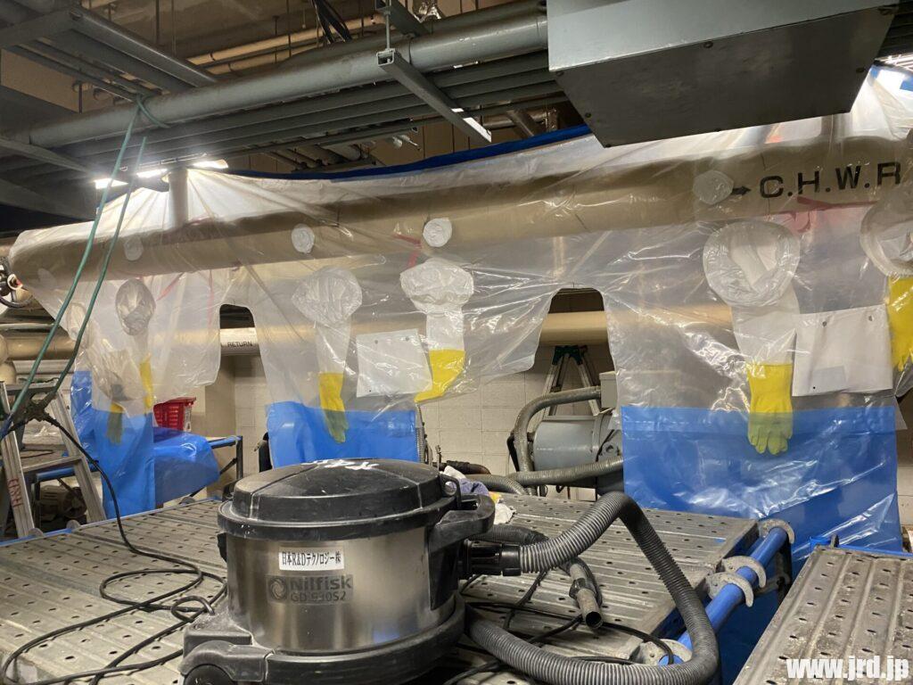 米軍横田基地BLDG 3001アスベスト含有断熱材除去工事(グローブバック工法)